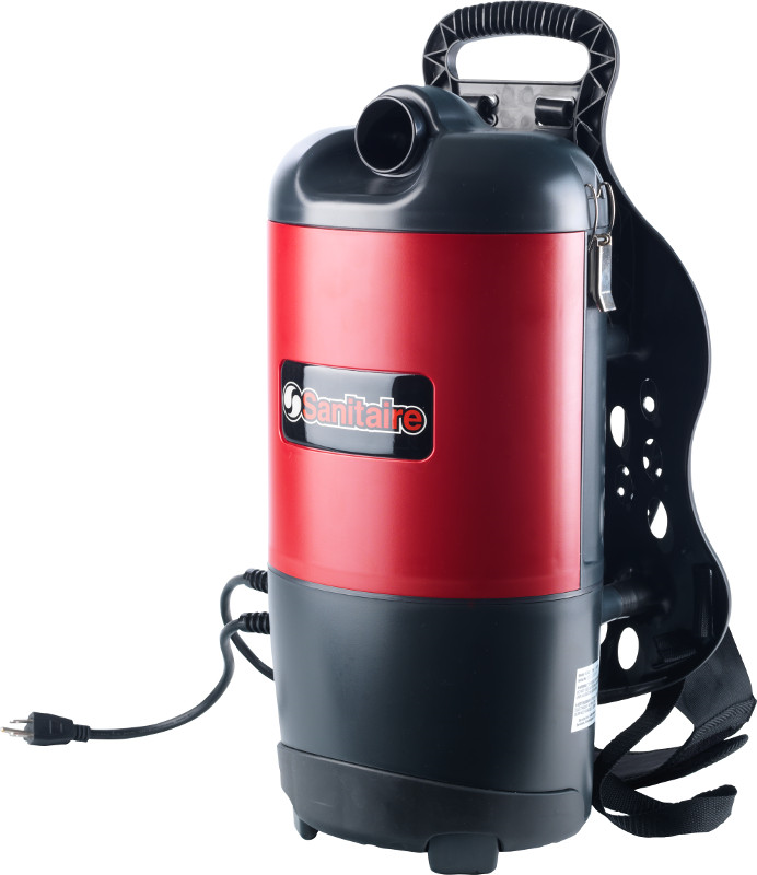 If you have a large room to clean with little time to do the job, consider the UL listed commercial Sanitaire Back Vacuum, model SC412.