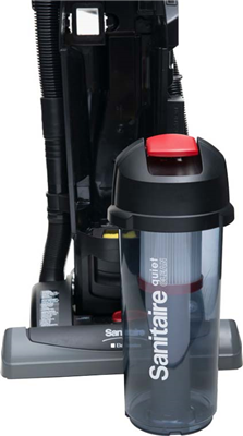 The Sanitaire model SC5845 Quiet Clean uses a Bagless cyclonic system with the largest dust cup on the market. It cleans more without needing a bag change. Cleaning a room from floor to ceiling has never been easier with on-board accessories for a 10-foot reach, a wide air path to reduce clogging and a 15-inch cleaning path.